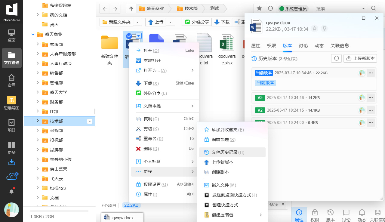 DocuVerse cloud office helps enterprises backup important files on personal computers in real time, making office files inheritable and recoverable, and ensuring that enterprises 'core data assets are not lost.