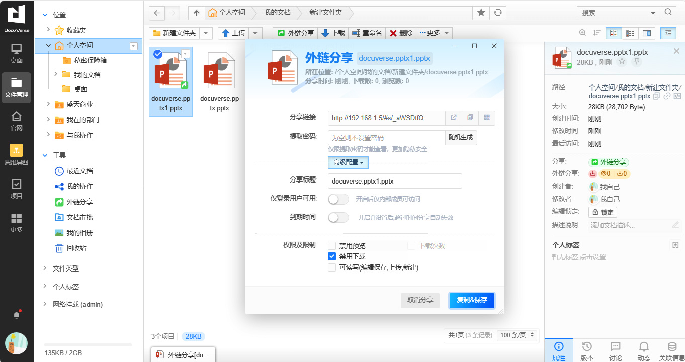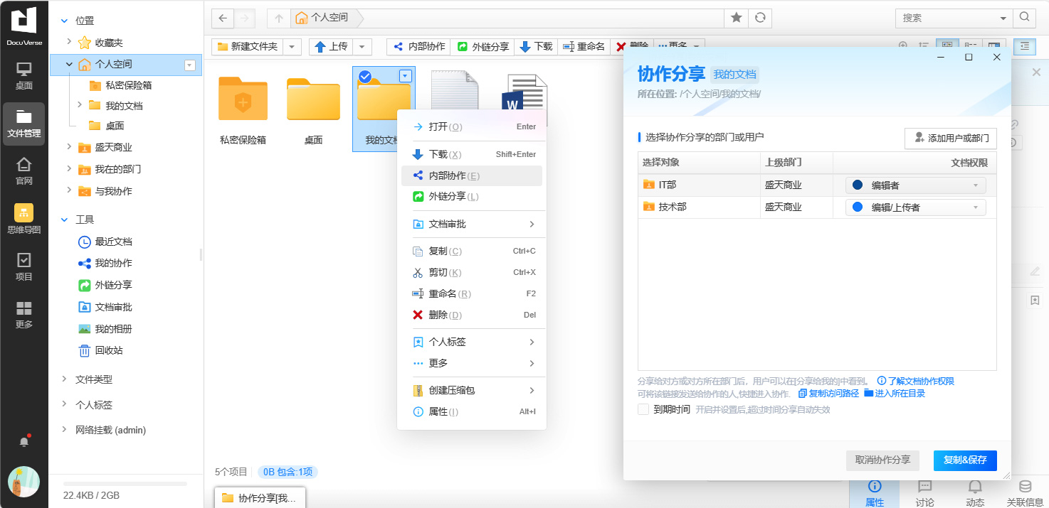 Centralized storage and management of enterprise data is the core function of DocuVerse Cloud Office, allowing users to easily complete daily work in an easy-to-use operation interface, such as file uploading, downloading, sharing and other functions. At the same time, it also has security settings to control data security.