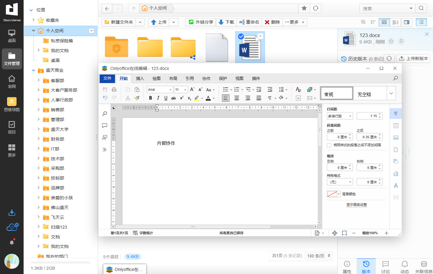 DocuVerse cloud office is a great tool to assist team cooperation. It not only improves employee efficiency and speeds up the company's project process, but also makes safe and reasonable use of enterprise resources to maximize the value of enterprise resources.